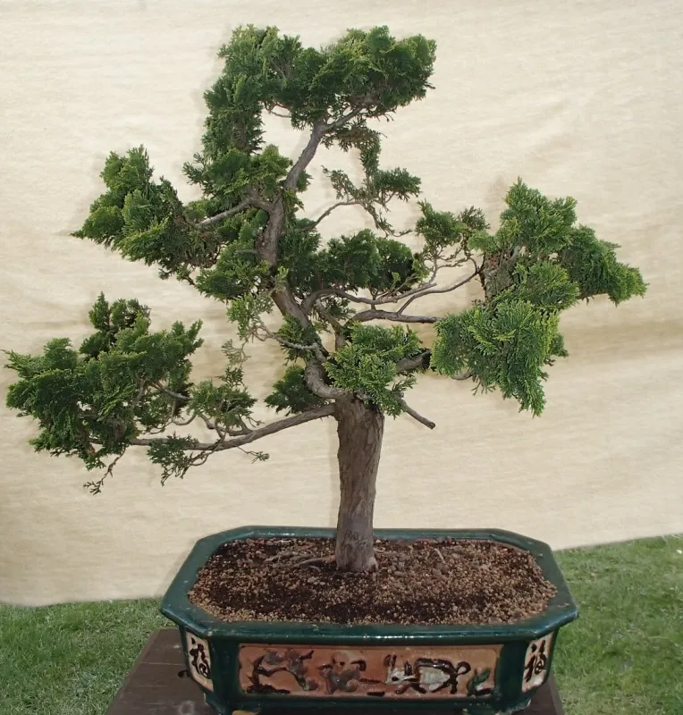 K prodeji nabízím venkovní tvarovanou bonsai "Cypřišek tupolistý", o max. výšce a šířce stromu cca 80cm. Celková váha cca 20kg. Stáří stromu je 30 let. Jedná se o zdravý celoročně zelený strom, vypěstovaný v ČR, nejedná se o dovoz. Zasazeno v kvalitním substrátu s penzou a akadamou. Vhodné jako dekorace na zahradu /terasu. Pouze osobní odběr.