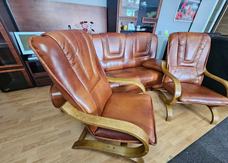 Sedací souprava 3F+1+1 skládající se z rozkládacího trojsedáku a 2ks pohupovacích křesel.