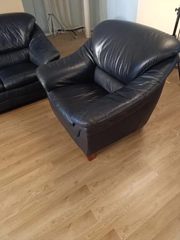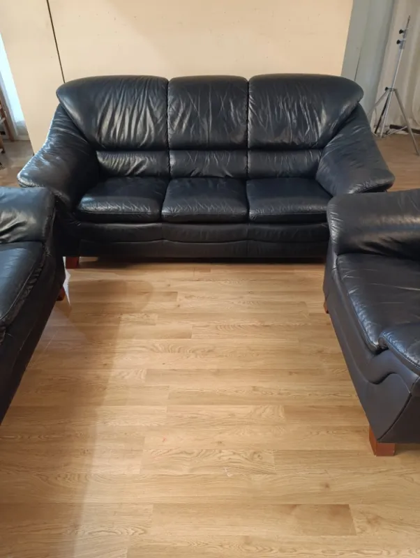 Prodám sedací soupravu z pravé kůže, vyrobeno na zakázku, nikde neroztrženo, barva Midnight Blue. Při rychlém jednání sleva.