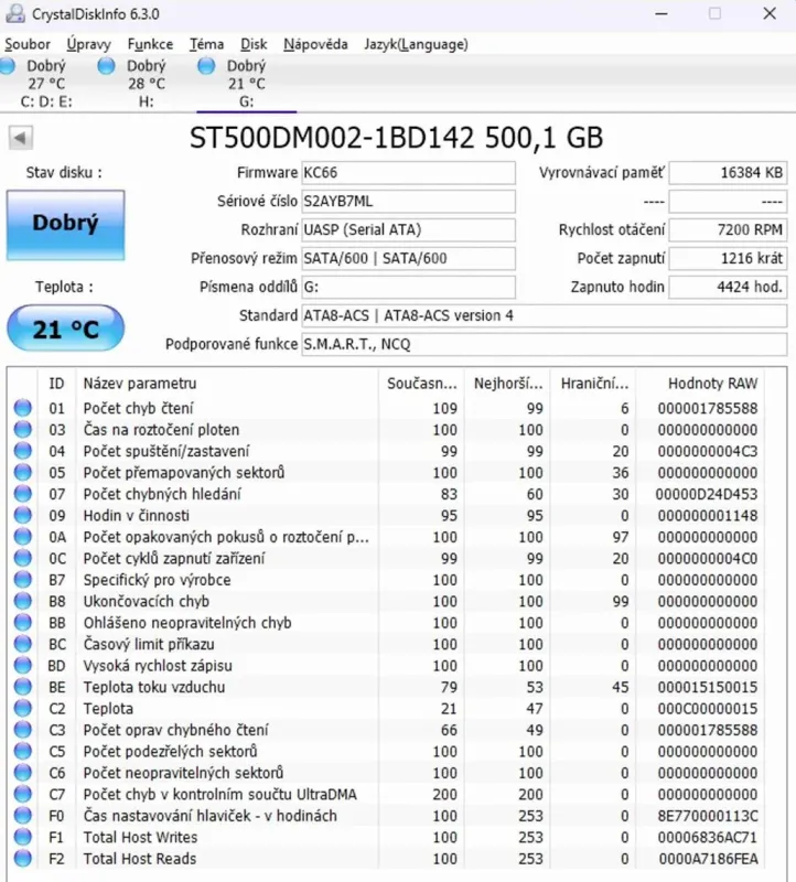 Prodám plně funkční disk 3,5´´ HDD Seagate 500 GB.V provozu pouze 4424 hod-viz foto.Balíkovna je nyní za 50 Kč.