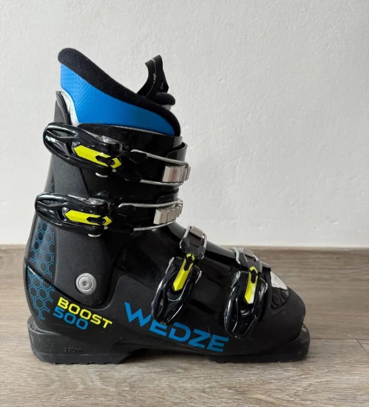 Spolehlivé lyžáky Wedze Boost 500, které mají za sebou několik jízd, takže nesou známky používání. Přesto stále dobře poslouží a jsou ideální pro rekreační lyžování nebo začátečníky.