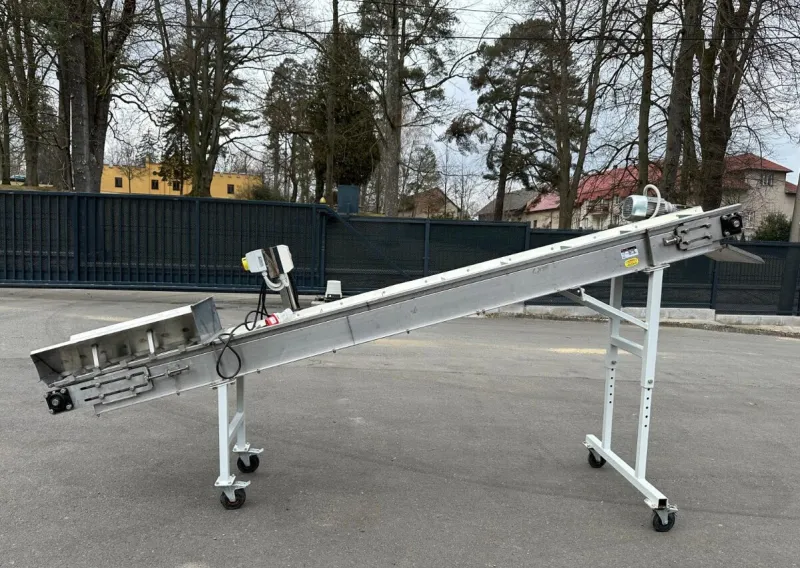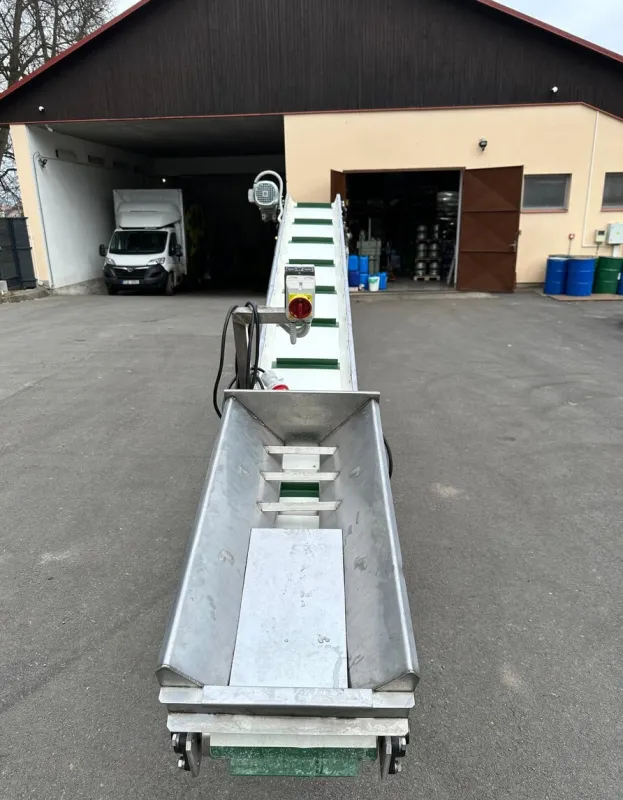 Prodáme potravinářský dopravní pás. Dopravník je komplet nerezový. Dopravník byl málo používaný a je ve výborném stavu. Délka dopravníku je 3600mm a šířka 300mm. Stavitelná výška je od 1300mm do 1800mm. Výrobce je dopravní pásy Klemenet.