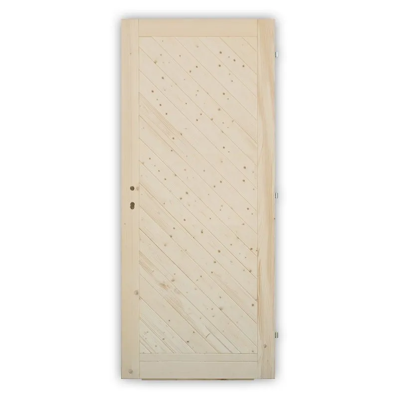 Palubkové dveře šikmé plné, výroba z masivu smrk, nenatřeno, bez zámku.